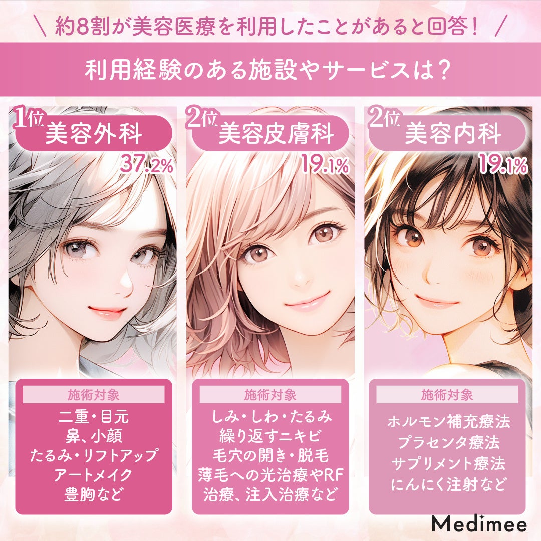 20〜50代の全年代で美容外科が最も多く利用されていることが分かりました。