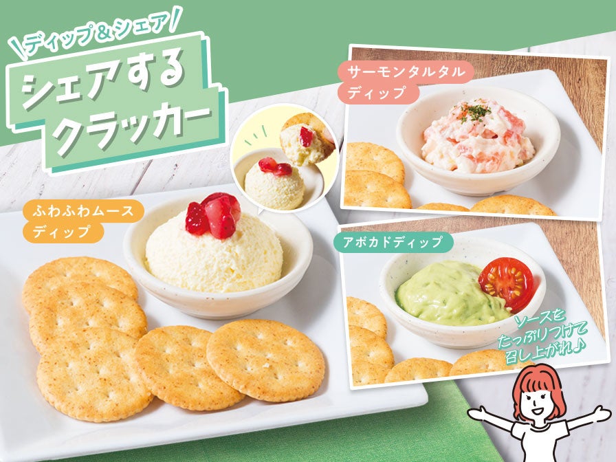 ●シェアするクラッカー(アボカドディップ、サーモンタルタルディップ、ふわふわムースディップ)