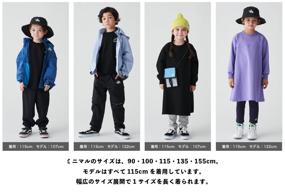 『minimal(ミニマル)』はキッズからジュニアサイズを展開。動きやすくファッション性も兼ね備え〈キッズの活動的な毎日を快適に〉〈ママやパパのホームケアをらくに〉する機能を持つウェアブランドです。