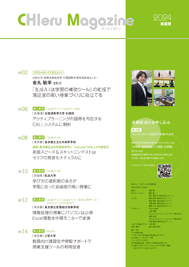 「高校・大学版」の巻頭インタビューでは、生成AIと教育に関して数多く提言されている京都大学 国際高等教育院 附属国際学術言語教育センターの金丸敏幸准教授にご登場いただきました。金丸先生は日本の英語教育における生成AIのインパクトを具体例とともに分析しつつ、「CALLやMALLの学習支援システムと組み合わせ、英語力を公平・公正に評価する取り組みが必要」と述べています。