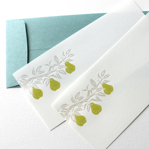 小ぶりで可愛らしい洋なしを添えた一筆箋セットは、気軽に思いを伝えたいときにおすすめです。