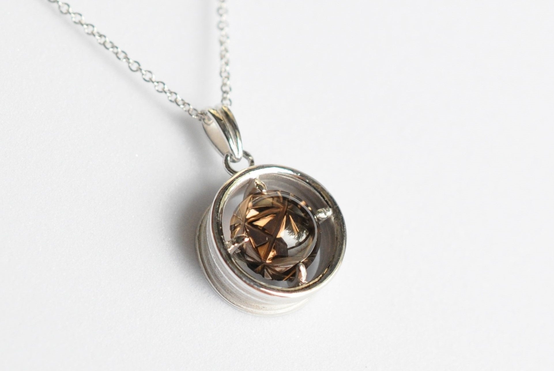 蜜ろうのひきめ模様と切子細工を施した色石を合わせたペンダントです。シンプルで毎日着けたくなるデザインです。