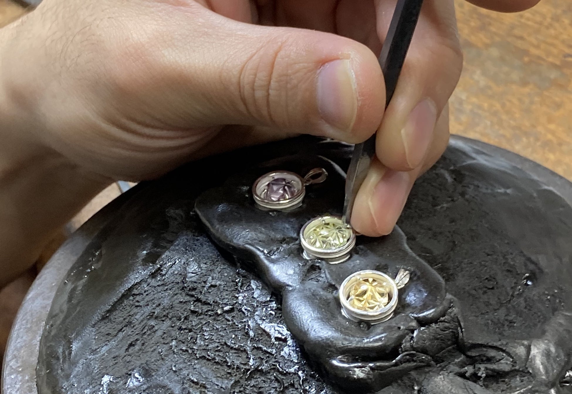 響き合うふたつの伝統技法。蜜ろうでかたち作るジュエリー「HANAno」×「甲州貴石切子 PlusThree」