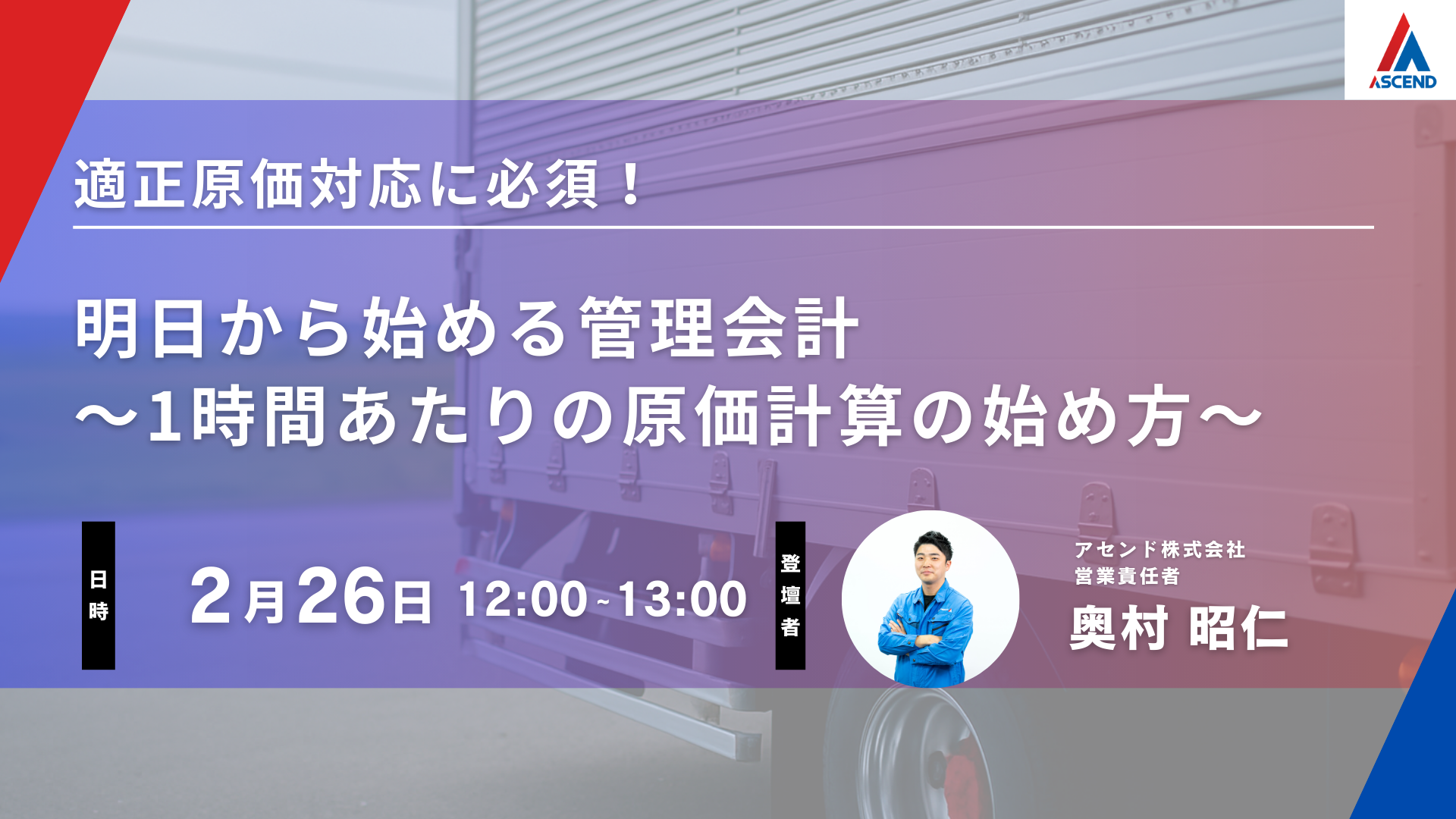 「トラック新法」の下、調査が実施された適正原価。その対応の土台として、管理会計の第一歩を明日から動かせる形で整理します。