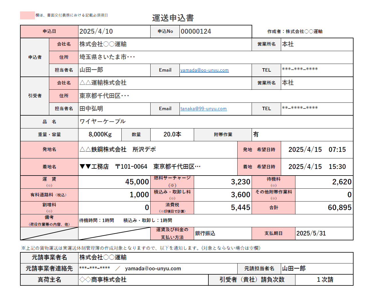 以前より「実運送体制管理簿」のフォーマットはご提供をしておりましたが、この度新たに協力会社に対して発行する「運送申込書」も追加で搭載し、ロジックスを利用するだけで、法令対応が可能になる体制を整えました。