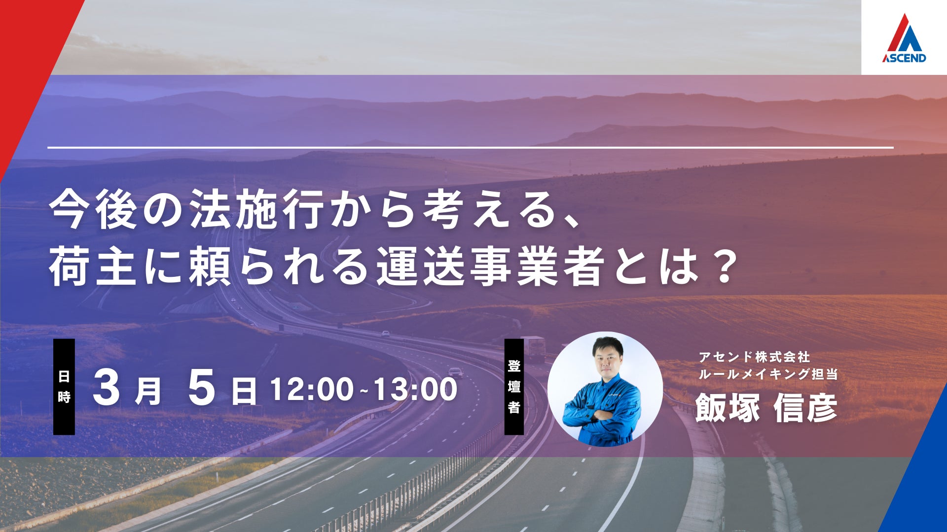 2.3/5(木)開催!今後の法施行から考える、荷主に頼られる運送事業者とは?