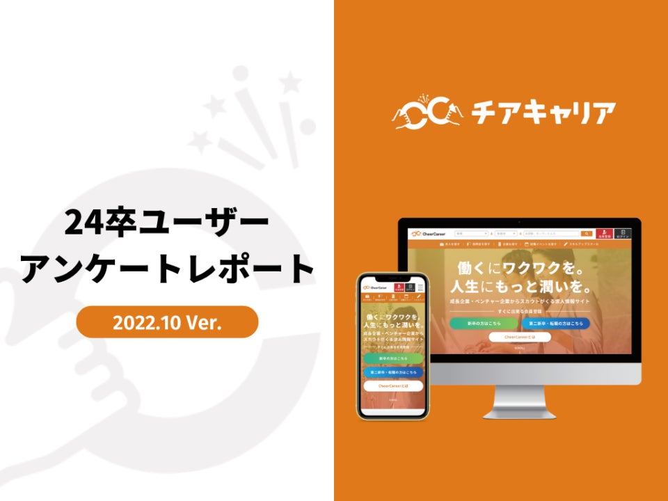 「働くにワクワクを。人生にもっと潤いを。」をミッションに掲げ、成長志向のバイタリティあふれる人材とこれから日本の経済を盛り上げていくべく挑戦を志すベンチャー企業とをつなぐ就活サイト「CheerCareer(チアキャリア)」を運営する株式会社Cheer(本社:東京都新宿区、代表取締役:平塚ひかる)は、24卒の登録ユーザーを対象とした就活に関するアンケートを10月度に実施し、レポートを発表いたしました。
