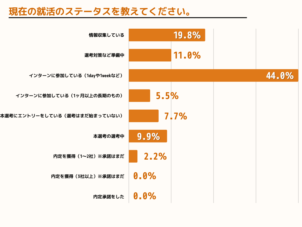 2022年10月までに選考に参加していると回答した学生は全体の約19.8%