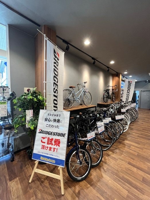ダイワサイクル東越谷店では、ダイワサイクルオリジナル自転車だけでなく「ブリヂストンサイクル」のコーナーも常設しております。他のダイワサイクルの店舗ではお取り寄せ対応になる商品も現物をご用意しておりますので、是非お立ち寄りください。