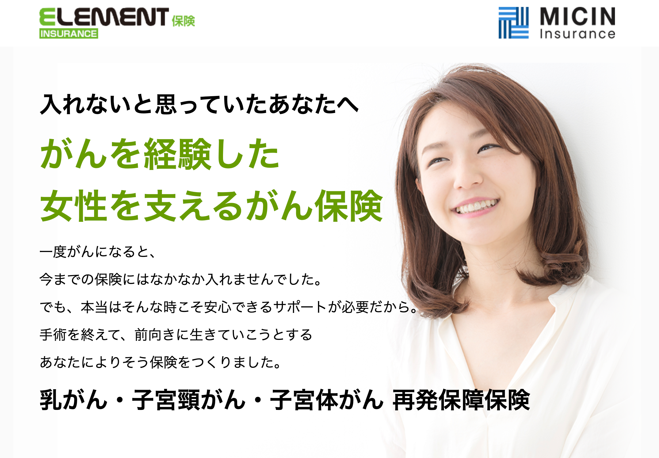 がんを経験した女性を支えるがん保険サイト 〜 https://element-insurance.info/micin/ 〜