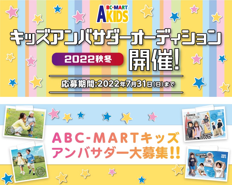 本オーディションはInstagramでABC-MARTキッズ公式アカウントをフォローし、 ABC-MARTで取り扱っているキッズシューズが写った写真を、ABC-MARTキッズ公式アカウントをタグ付け、指定ハッシュタグ(「#abcキッズオーディション2022秋冬」「#abcmart」)を付けて投稿することで応募が可能です。