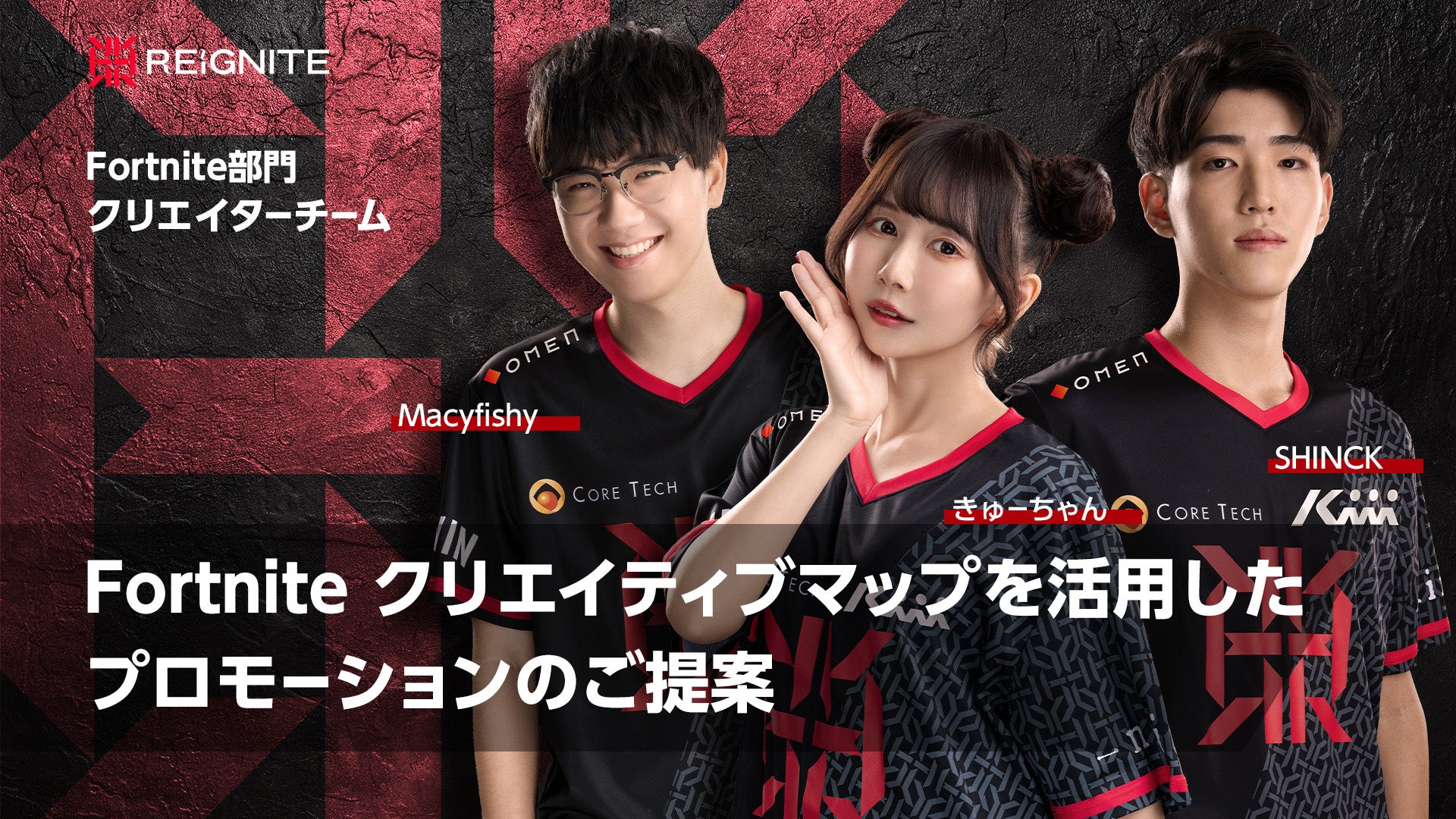 株式会社Reignite Entertainment(本社:東京都目黒区)が運営するグローバルeスポーツチーム「REIGNITE」所属の「Macyfishy」「Shinck」「きゅーちゃん」が担当する、Fortniteのクリエイティブモードを使用した、オリジナルのクリエイティブマップ作成プランをご提案いたします。