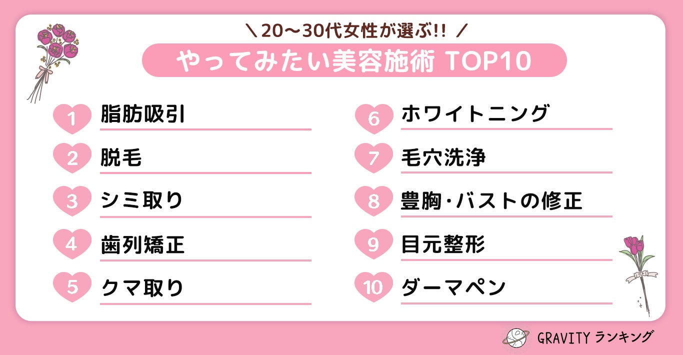 【GRAVITYランキング】ミレニアル世代が選ぶ!!「やってみたい美容施術TOP10」