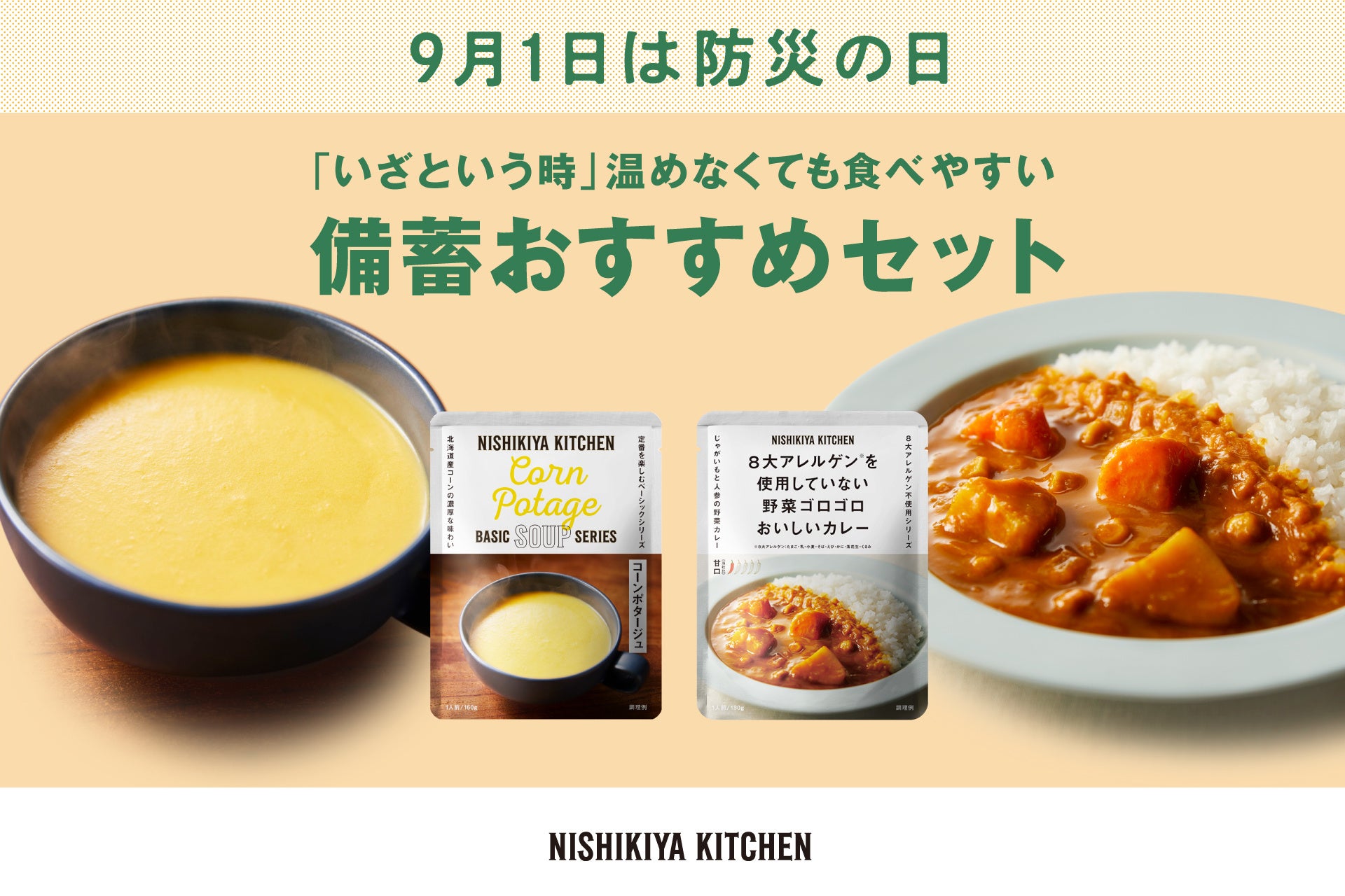 「世界の料理を『カンタン』に。」をコンセプトに掲げ、レトルトカレーやスープなどを販売するレトルト食品専門店NISHIKIYA KITCHEN(ニシキヤキッチン)(株式会社にしき食品 本社:宮城県岩沼市、代表取締役:菊池洋)は、2024年8月19日(月)から2024年9月4日(水)まで、9月1日の防災の日に合わせて、備蓄おすすめセットを販売します。さらに、温めなくても食べやすいレトルトカレーやレトルトスープの試食を実施します。レトルト食品は常温で長期保存が可能なため、非常食にもぴったりな食品です。通常、レトルト食品は、温めて食べることを推奨としている商品が多いですが、非常時に温めることができなくてもおいしく食べられるレトルト食品もあります。温めなくても食べやすいおすすめの商品もご紹介します。