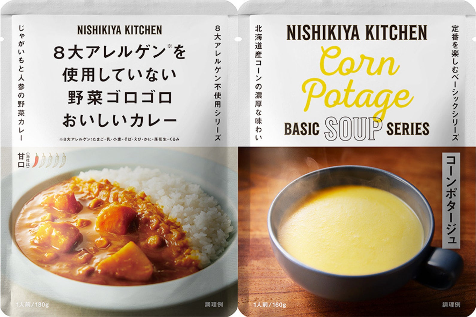 『野菜ゴロゴロカレー』と『コーンポタージュ』が1パックずつ入ったセット(700円)