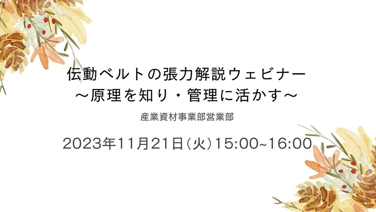 【無料ウェビナー】伝動ベルトの張力解説ウェビナー~原理を知り・管理に活かす~