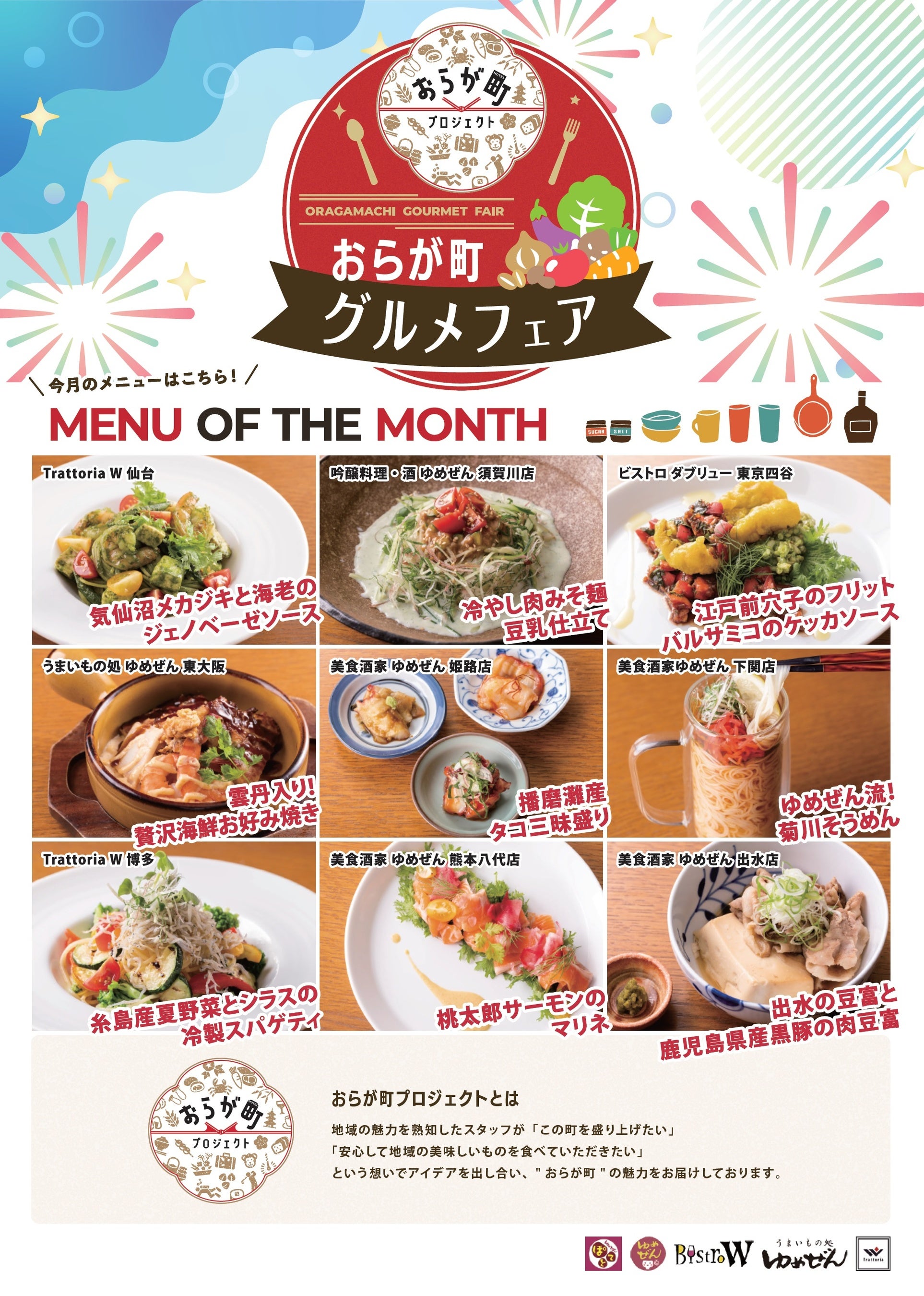 ホテルウィングチェーン直営レストラン・居酒屋 全国9店舗で開催。地域の旬食材を味わう「おらが町グルメフェア」第三弾スタート!(8/31まで)