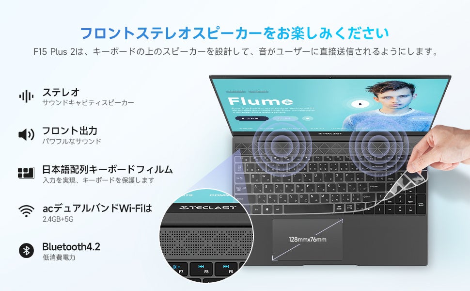 F15Plus2は、キーボードの上のスピーカーを設計して、音がユーザーに直接送信されるようにします。