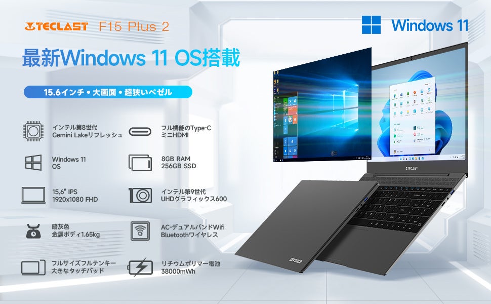 TECLAST F15 PLUS 2 薄型ノートパソコンWindows 11, 8GB + 256GB大容量