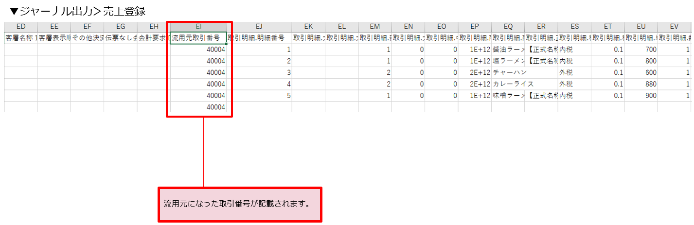 流用売上登録をして会計した売上に流用元会計のレシートNoを確認できるようになりました。