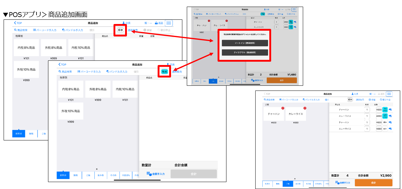 新機能4:税率切替え機能強化(商品選択画面での税率切替え)