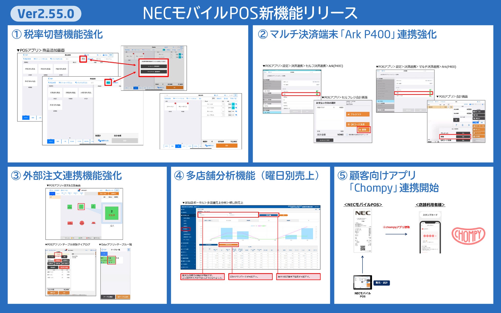 NECモバイルPOS、飲食店の新たなサービスに対応する最新バージョン(Ver2.55.0)をリリース