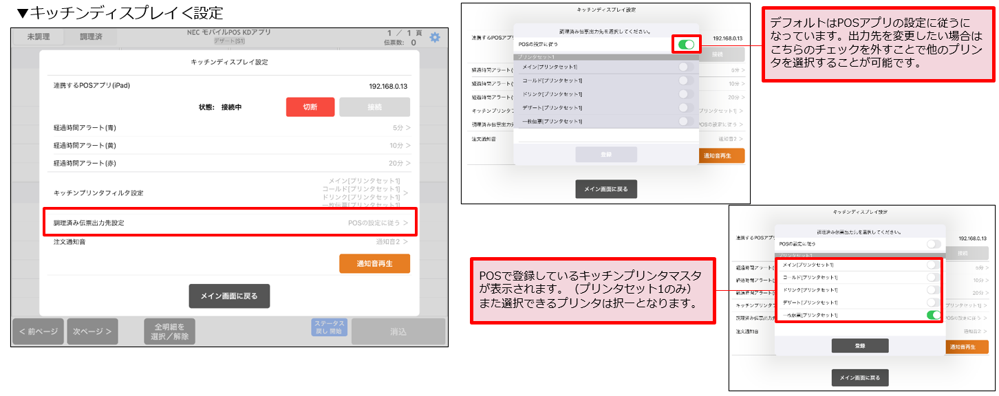 新機能9:キッチンディスプレイ強化(調理済伝票出力先設定)