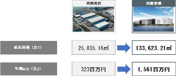 (注2) 再開発前の「年間NOI※」は、2024年1月31日を価格時点とする産業ファンド取得の鑑定評価書に
