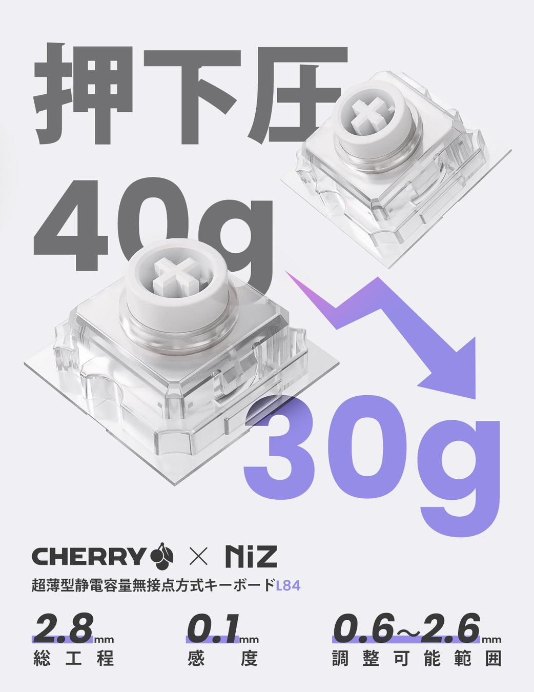 押下圧を40gから30gへ軽くするため、NIZはL84専用スイッチを開発。