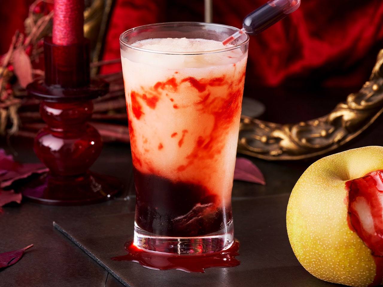 ハロウィンを代表するキャラクターのひとつ、吸血鬼「ヴァンパイア」をイメージしたスムージー。すっきりとした飲み心地の和梨を使用した白色のスムージーに、まるでヴァンパイアの口から垂れる血のような鮮やかな赤色とほんのりとした甘さが特長の「ヴァンパイアシロップ」をかけています。グラスの下部にはシロップ同様ヴァンパイアの牙についた血をモチーフとした赤色のぶどうゼリーを入れており、ぷるんとした食感や和梨とぶどうの味わいのハーモニー・色味のコントラストをお楽しみいただけます。
