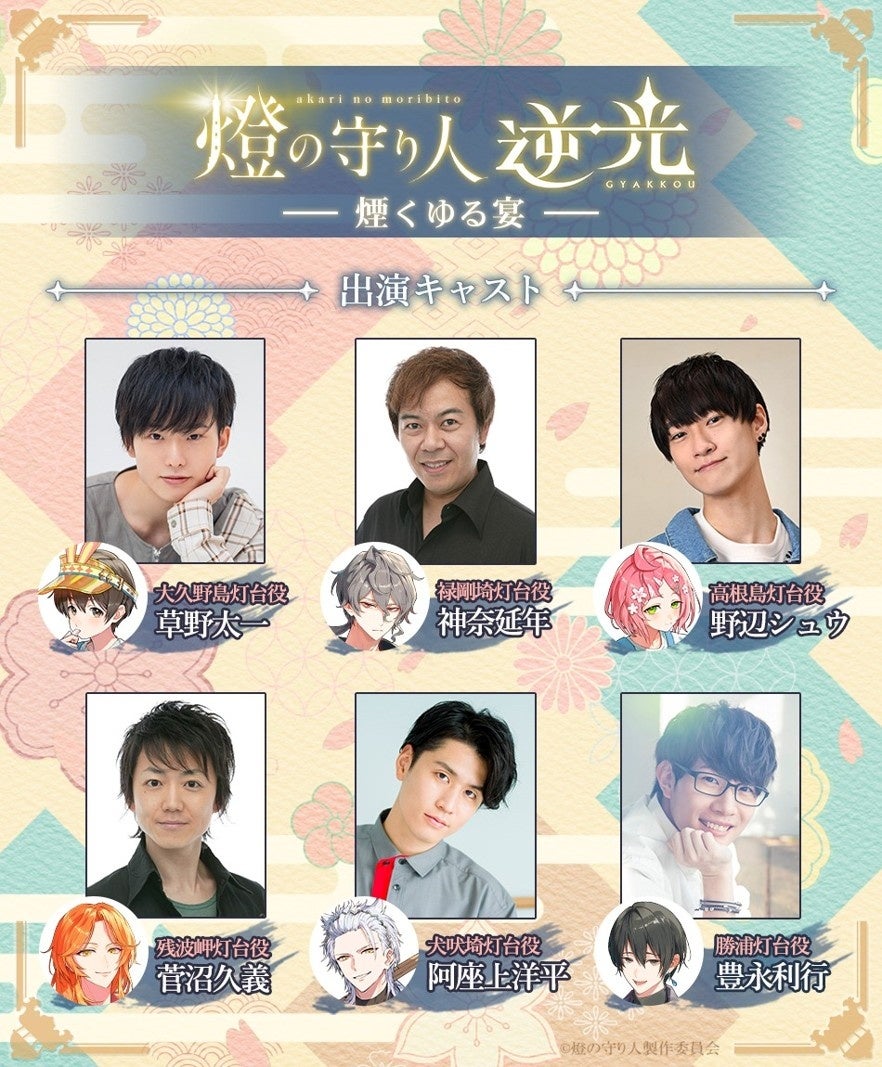『逆光 第4章 煙くゆる宴』では、神奈延年さん、草野太一さん、野辺シュウさん、豊永利行さん、菅沼久義さん、阿座上洋平さんの豪華声優陣がキャラクターに命を吹き込みます。