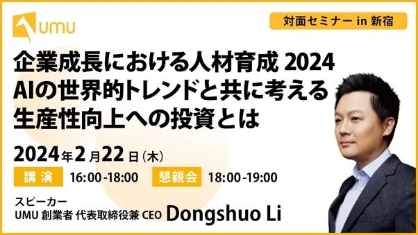 UMU創業者/代表取締役兼CEO Dongshuo Liが登壇、懇親会あり|2024年2月22日(木)16:00〜18:00@ベルサール西新宿