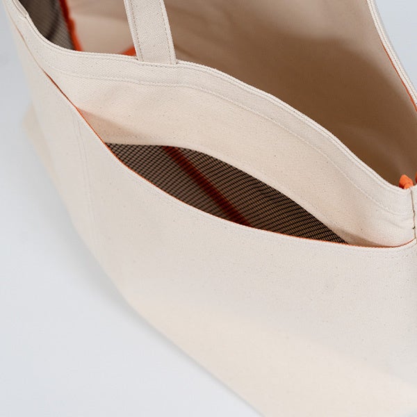 しっかりとした厚手の8号帆布を全面に使用、それらを国内の工場で生産。生地の折り込みなど見えないところにも丁寧な仕事が行き届いています。