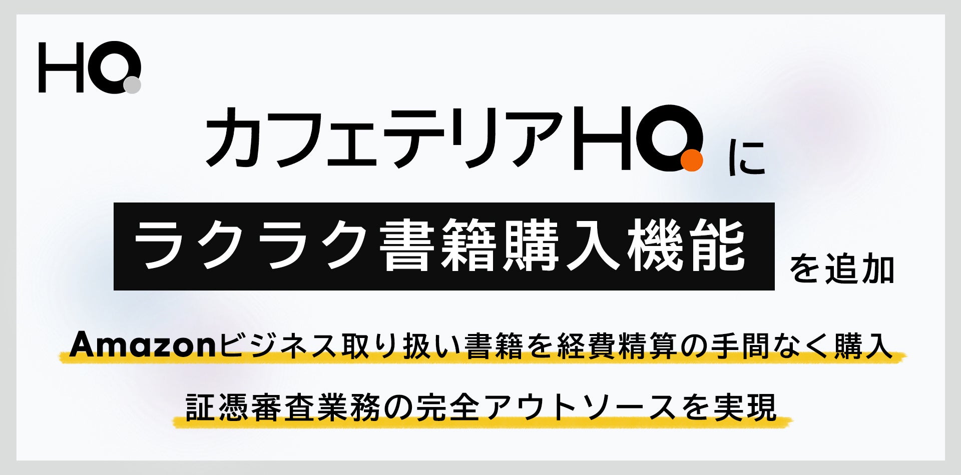 「福利厚生をコストから投資へ」をビジョンに掲げる株式会社HQ(読み:エイチキュー、本社:東京都港区、代表取締役:坂本祥二)は11月15日より、従業員が会社補助を活用して書籍を購入する際に、Amazonビジネスで取り扱う書籍を立替精算不要で購入できる「ラクラク書籍購入機能」を次世代福利厚生プラットフォーム「カフェテリアHQ」に正式に追加しました。「カフェテリアHQ」導入企業は追加費用なしで本機能をご利用いただけます。