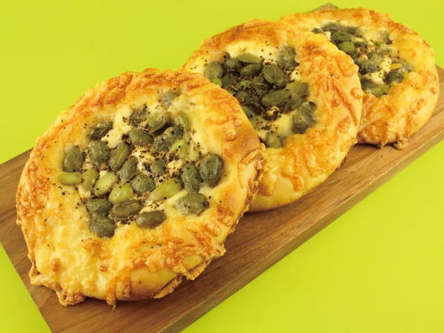 フランス産クリームチーズと丹波黒枝豆を、コーングリッツを使用したもっちりとした生地にトッピングし焼き上げました。ガーリック風味に味付けした枝豆とチーズの相性の良さには思わずビックリ!