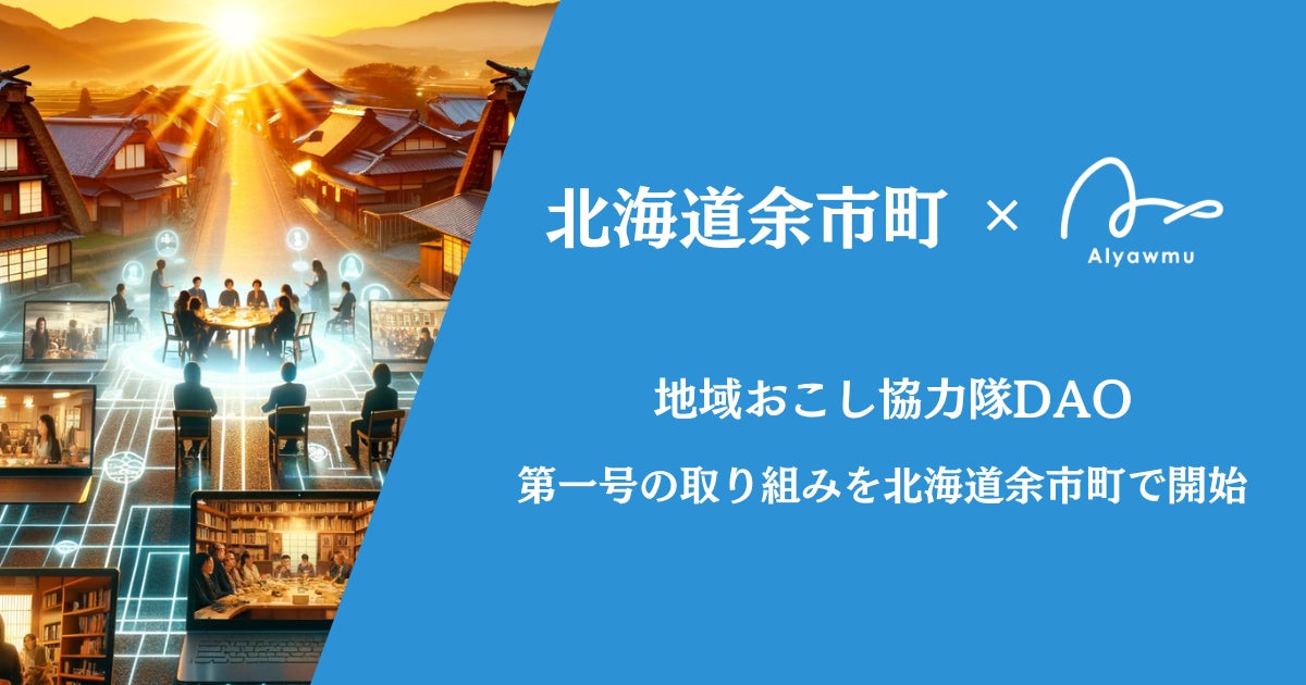株式会社あるやうむ(北海道札幌市/代表取締役:畠中 博晶/以下 あるやうむ)は「地域おこし協力隊」と「デジタルコミュニティ(DAO)」を掛け合わせて地域を活性化するサービス『地域おこし協力隊DAO』の第一号の取り組みを北海道余市町で開始します。地域おこし協力隊員がつくるDAOによる「新たな関係人口創出」と「地域課題の解決」が目的です。自治体のDAO設立への取り組みを推進し、地域活性化とDXを加速させます。※デジ田交付金での対応も可