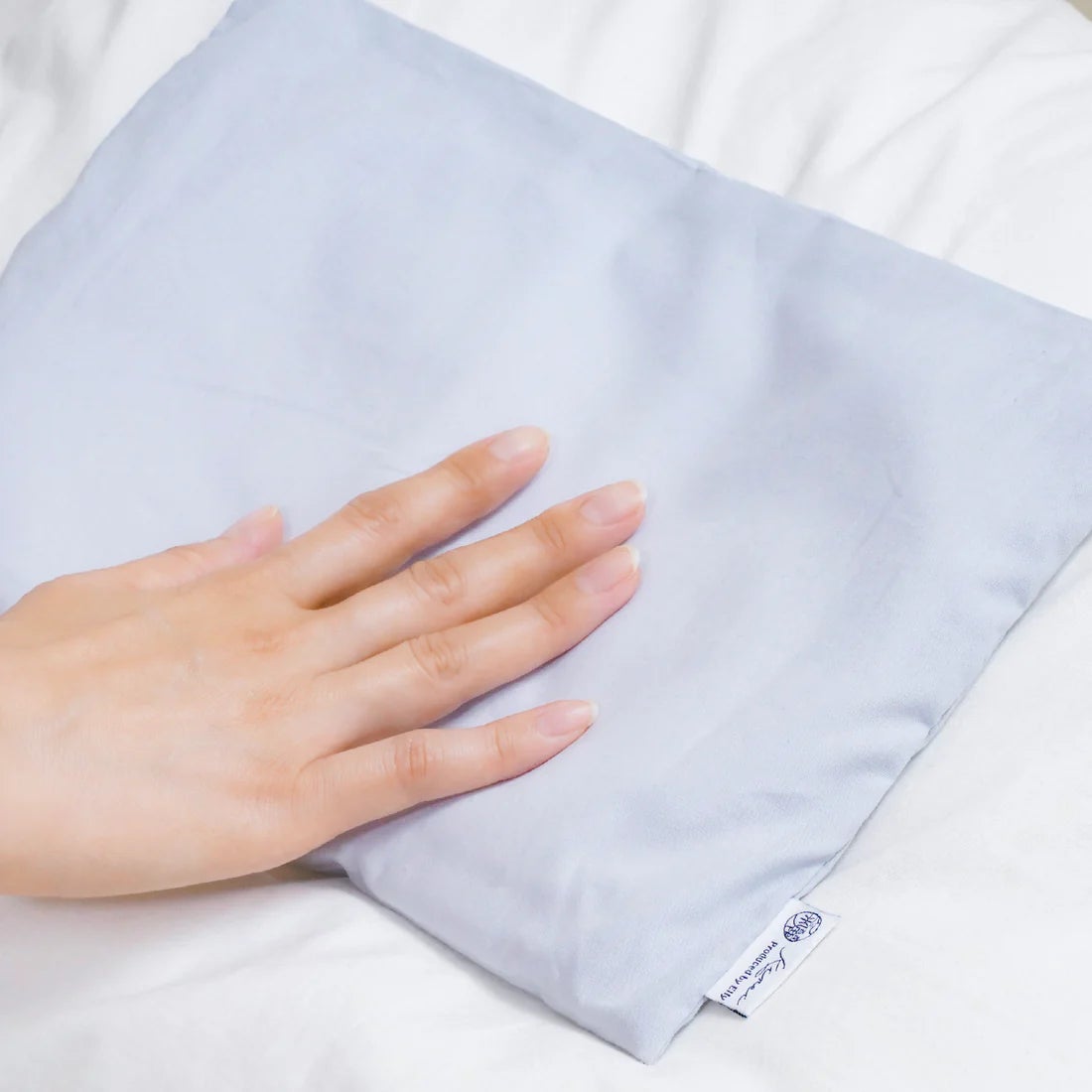 涼しげなライトブルーグレーのカバーは、素材が綿100%で肌にやさしく、心地よい眠りをサポートします。