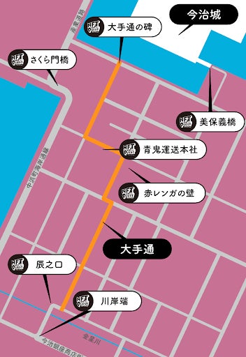 「オールドイマバリ大手通クエスト THE GAME in Imabari」では、今治城の正面(大手)から辰之口までの道に点在する7スポットを散策し、7つのNFTを獲得することができます。