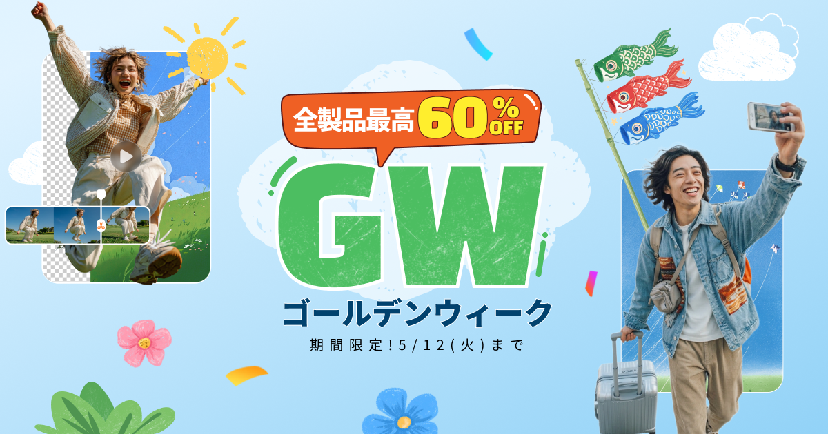 今年のゴールデンウィークは、HitPawのツールを活用して、日常や旅の記録をよりクリエイティブな作品に変えてみませんか?最大60%OFFの特別価格で購入できるこのチャンスを、ぜひご活用ください。