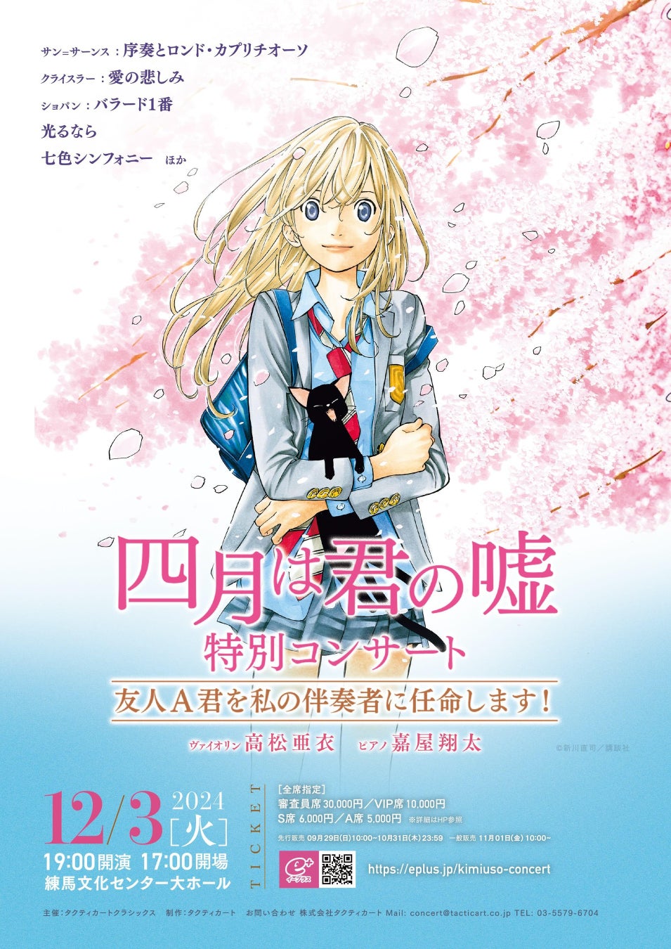 今年4月に浜離宮朝日ホールでの公演を皮切りに、日本各地で反響を呼んでいる「君嘘コンサート」。一夜限りの特別公演として、2024年12月3日(火)・練馬文化センター 大ホールにて開催されます。