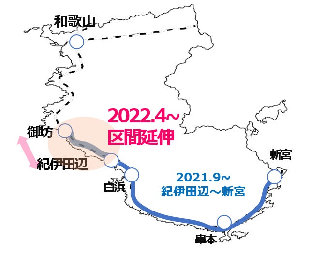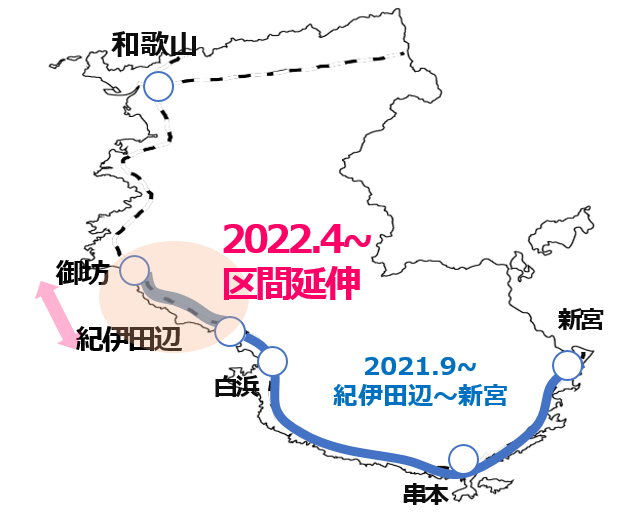御坊~紀伊田辺駅間を区間延伸(全長146.1km)