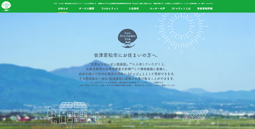 会津若松市の「複数分野のデータ連携による共助型スマートシティ推進事業」において環境価値の地域循環サービス「会津ゼロカーボン倶楽部」の社会実装を開始