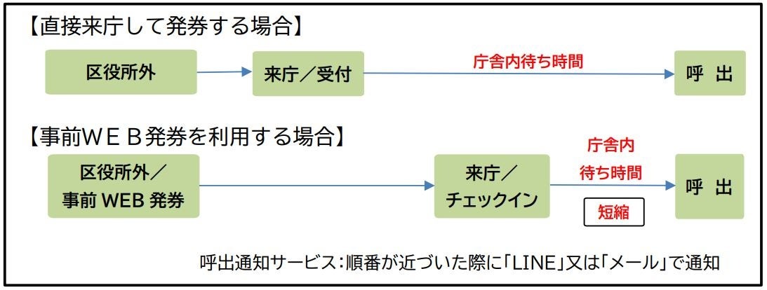 来庁前に受付番号の事前発券、待ち時間短縮!