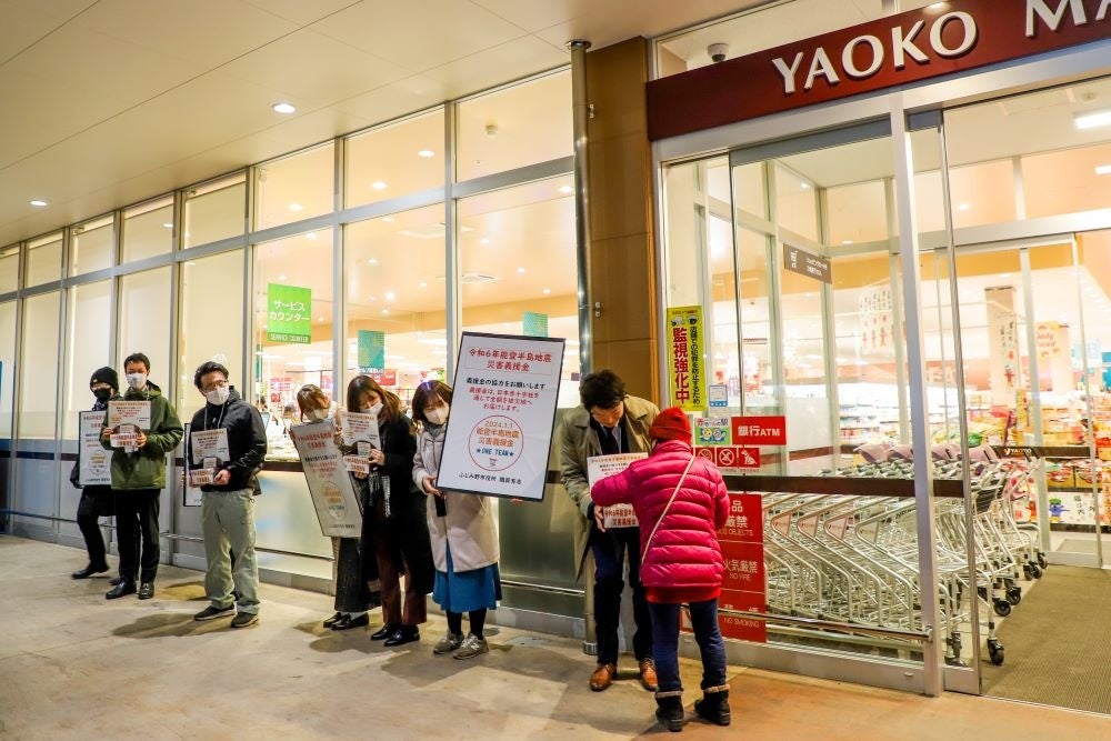 令和6年1月1日能登半島地域を震源とする地震で災害された方々の支援について、市として物的・人的支援等、さまざまな支援の方法を検討している中、ふじみ野市職員有志が自分たちでも何か出来ることはないかと考え、まずは、職員有志でと。場所の提供をしてくれたヤオコー大原店のご協力や、社会福祉協議会の職員の賛同もあり、総勢47人で義援金の街頭活動を令和6年1月17日に行いました。皆さまからの温かい募金が125,712円集まり、日本赤十字社を通じて被災地へ届られます。