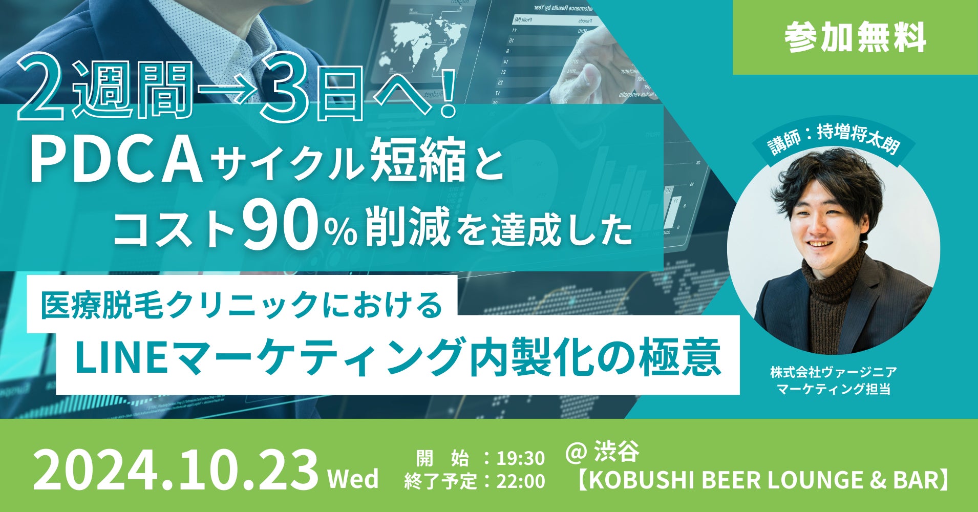 【10月23日(水)19:30~ 渋谷にて開催!】2週間→3日へ!PDCAサイクル短縮とコスト90%削減を達成した「LINEマーケティング内製化の極意」を伝授する勉強会を開催!