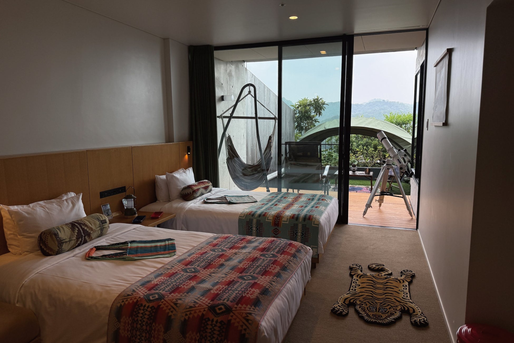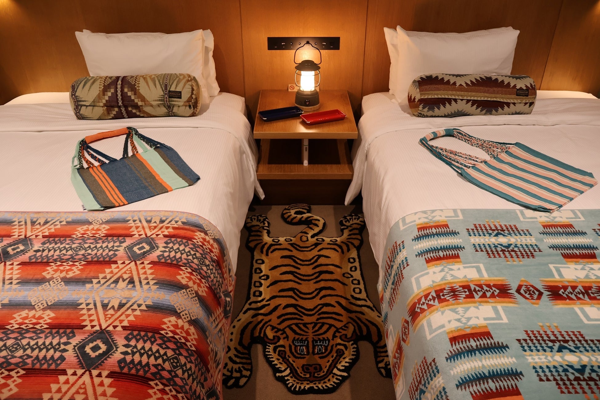 コラボレーションルームには、アウトドアショップ Orangeが厳選したキャンプグッズを取り揃え、テラスには大きなテントやローチェア、テーブルを設置しました。夏休みを迎えるお子様連れのファミリーや、手軽にキャンプ気分を味わいたいカップルや友達同士のご旅行で本格的なキャンプ体験をお楽しみいただけます。