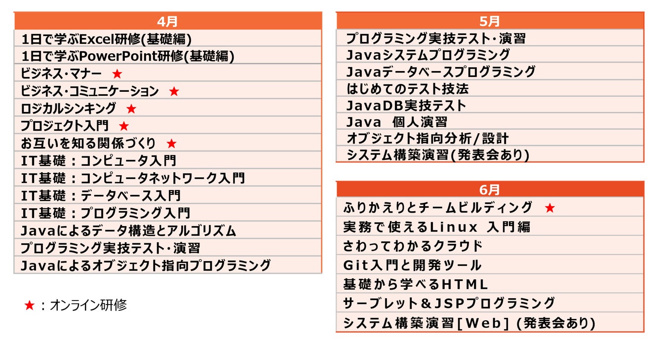 その他のコースや複数社合同新入社員研修の特徴など、詳細はこちら