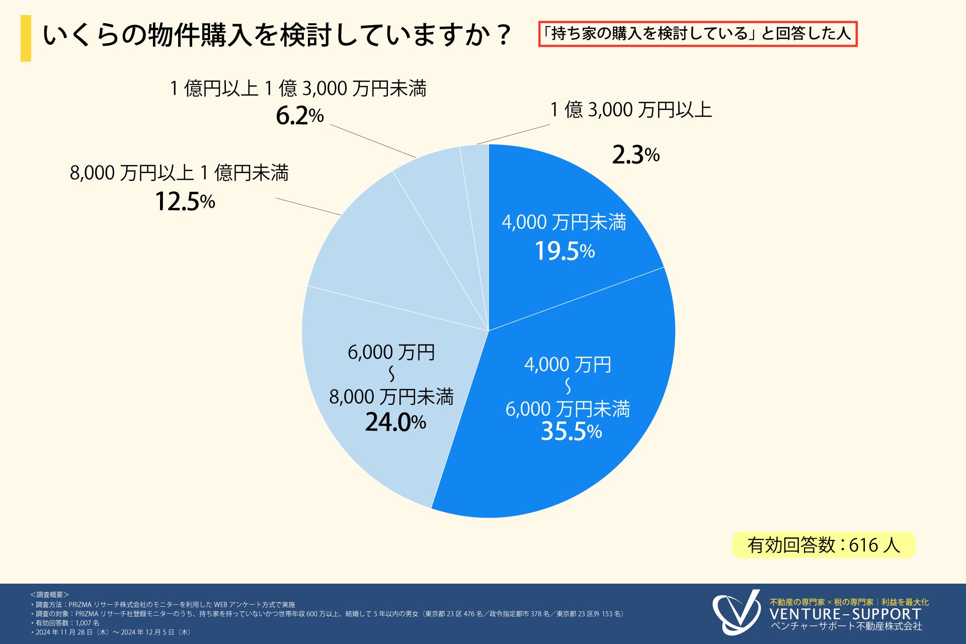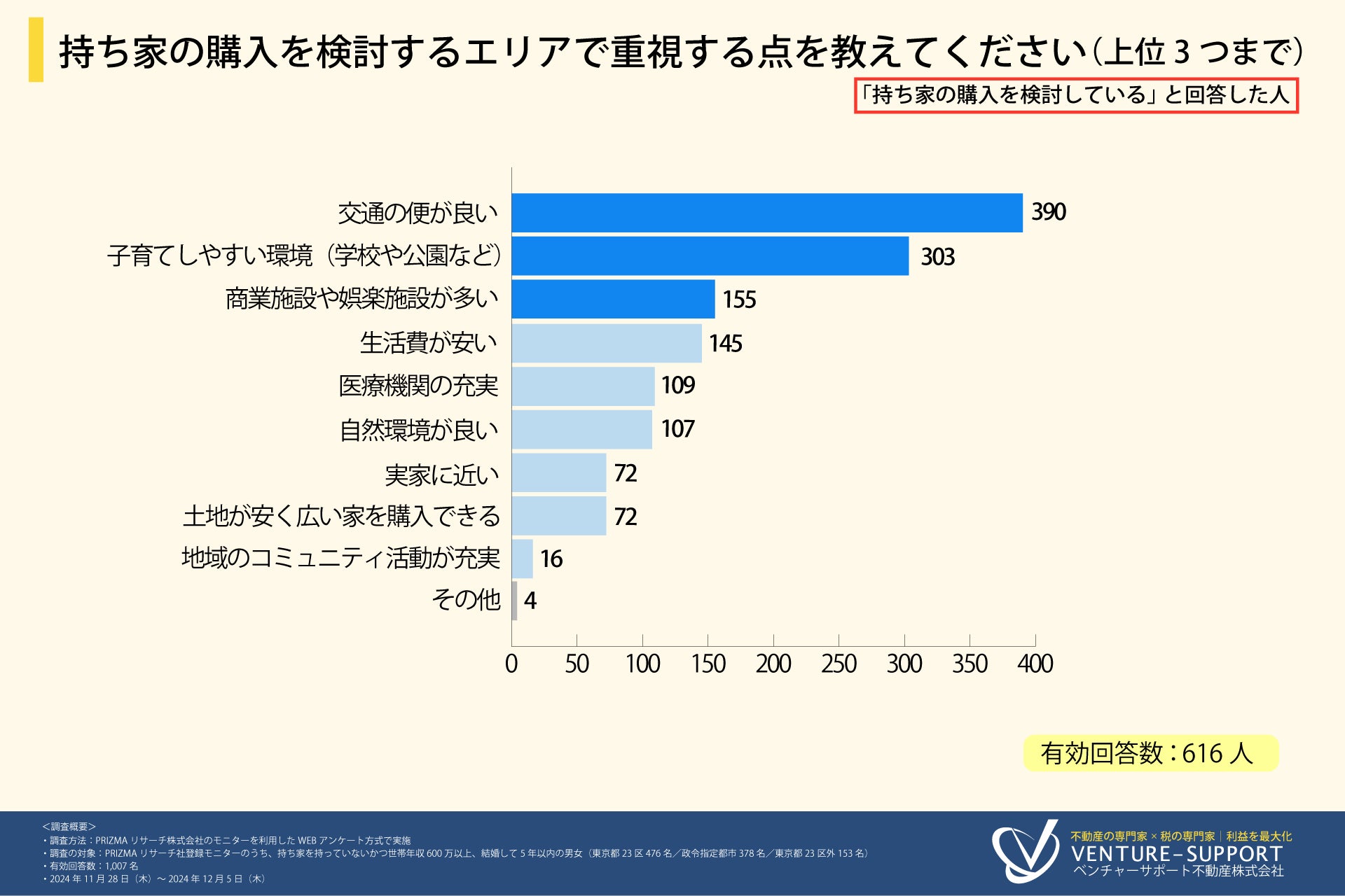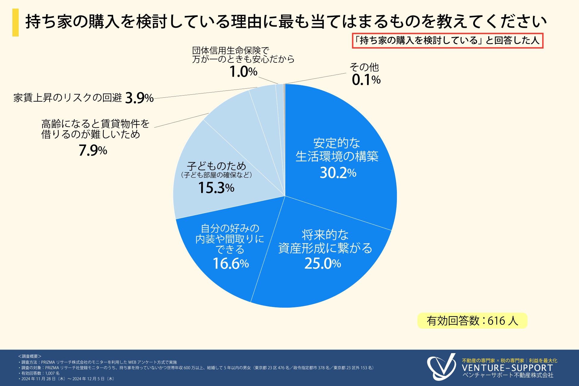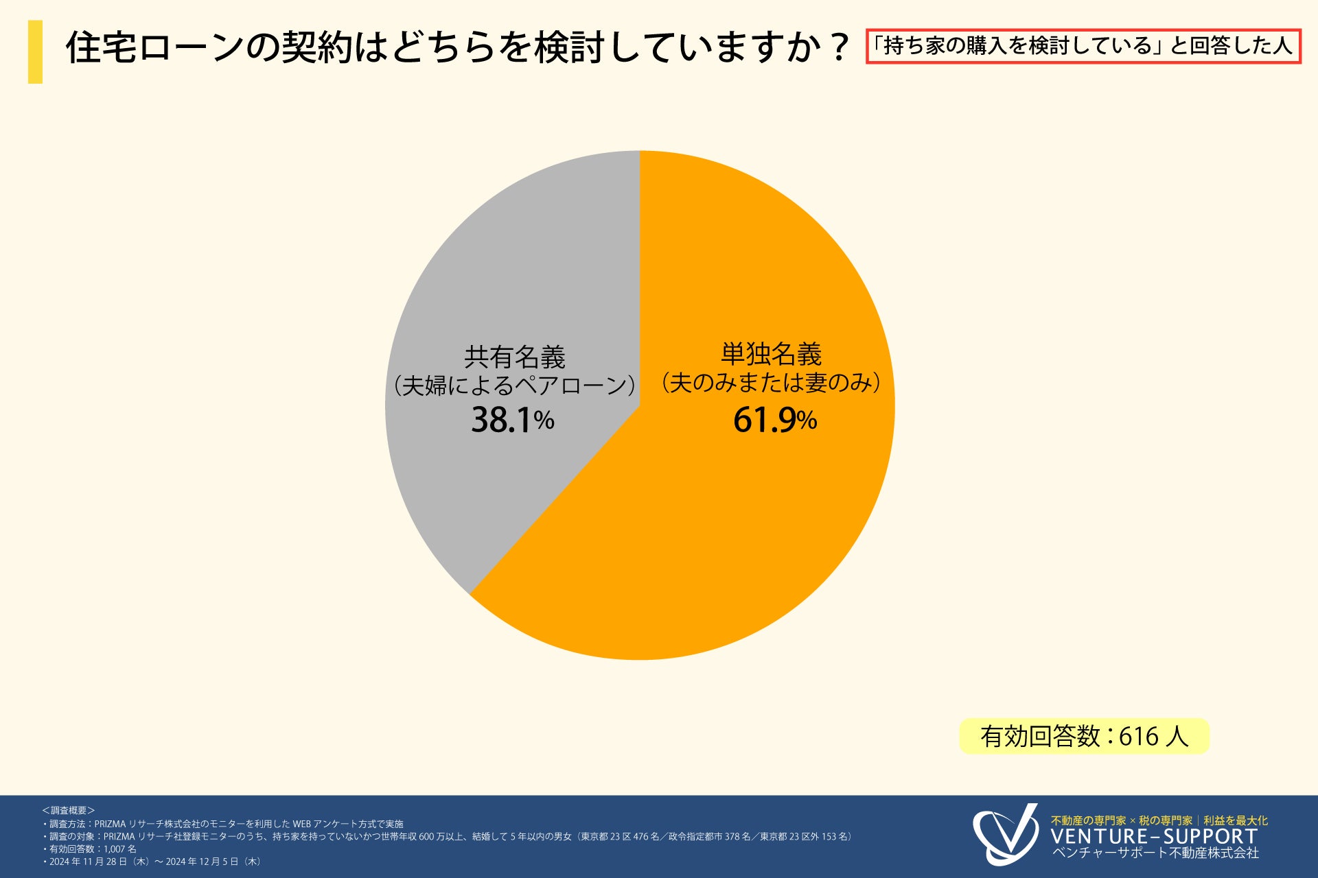 持ち家を持っていないかつ世帯年収600万以上、結婚して5年以内の男女に調査を実施。