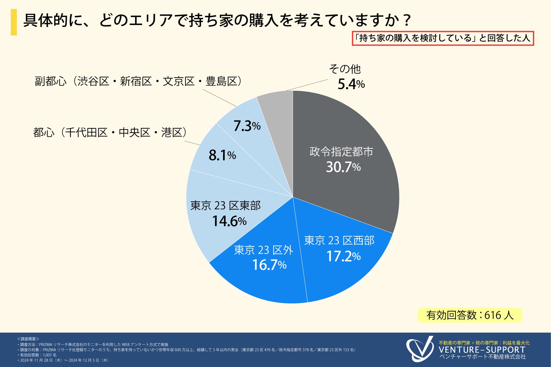 2. 調査の対象:PRIZMAリサーチ社登録モニターのうち、持ち家を持っていないかつ世帯年収600万以上、結婚して5年以内の男女(東京都23区 476名/政令指定都市 378名/東京都23区外 153名)を対象に実施