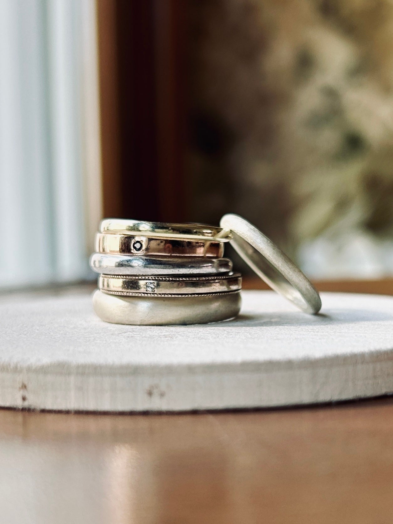 Debut icci 代官山では、職人のサポートのもと、初心者の方でも安心して世界に一つだけのペアリングを手作りできる体験を提供しています。お互いの指輪を作り合う時間は、きっと特別な思い出となり、完成したペアリングは、お二人だけの愛の証として永く輝き続けます。